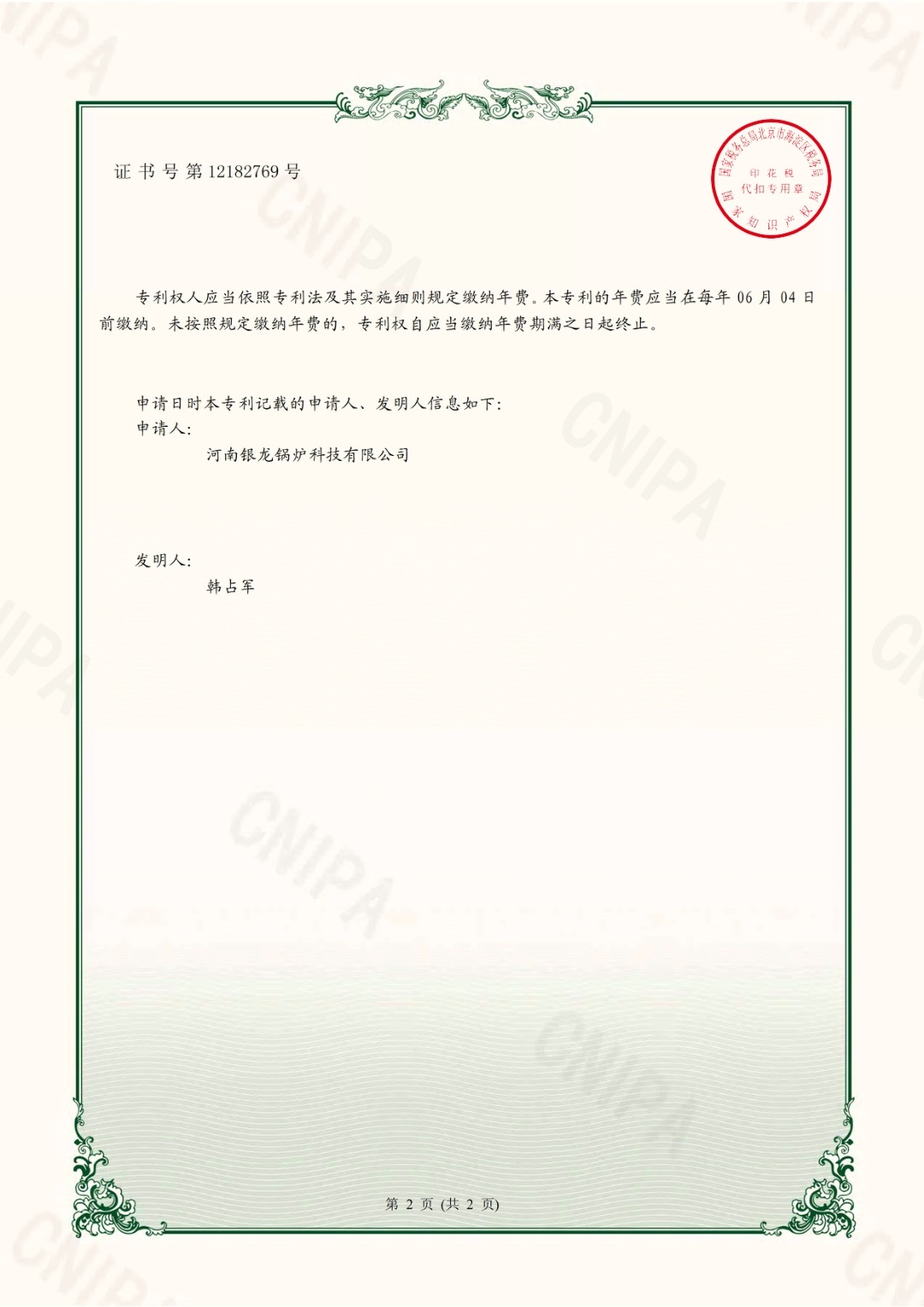 易除水垢電開水爐實(shí)用新型專利證書